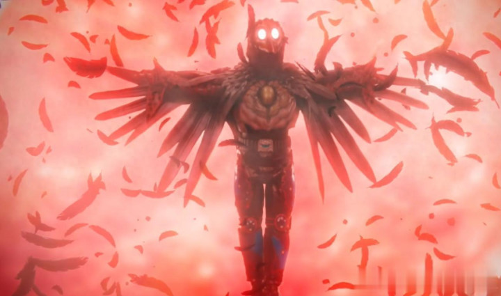 在和乌鸦梦魇大战的过程中,前期假面骑士ZZZ占据上风,毕竟都在陆地上,然而几个回合下来,乌鸦梦魇开始发挥了它翅膀的优势,直接翻转整个教堂,让新娘调入梦魇的红月中。而万莫津,在危机时刻使出了“飞翼“力量,背部长出了类似披风一般的翅膀,就走了新娘。